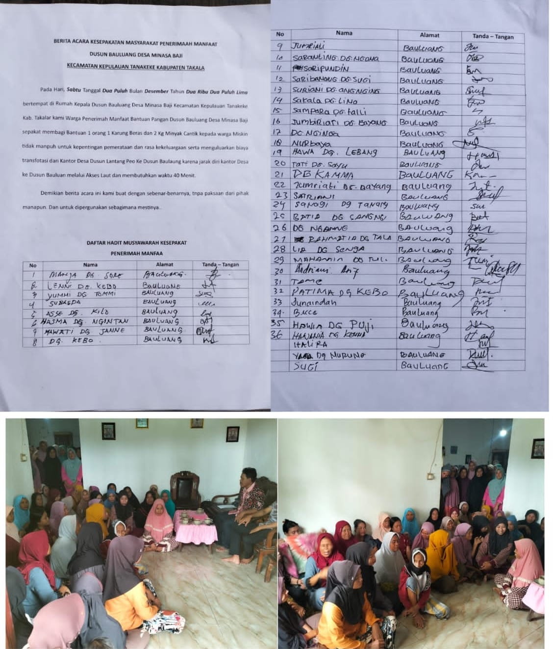 “Jadi sudah Ada kesepakatan bersama warga sebelumnya melalui rapat yang dibuktikan dengan berita bahwa mereka bersedia membagi satu karung kepada warga lain yang namanya tidak terdaftar,”ujarnya