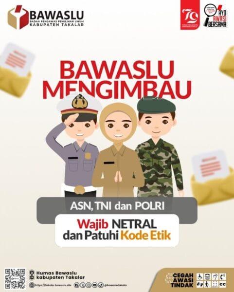 Olehnya itu, Bawaslu Kabupaten Takalar mengimbau kepada Bakal Pasangan Calon Bupati dan Wakil Bupati Takalar tahun 2024 untuk tidak melibatkan ASN dan Kepala Desa dalam Deklarasi atau Pendaftaran di KPU Takalar, Imbuh Zahlul Padil, Kordiv HPPH Bawaslu Takalar, Selasa (27/8/2024).