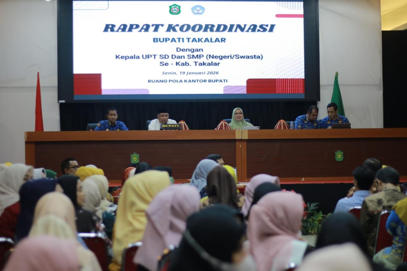 Penegasan itu disampaikan Daeng Manye saat memimpin rapat koordinasi bersama Kepala UPT SD dan SMP negeri maupun swasta se-Kabupaten Takalar di Ruang Pola Kantor Bupati Takalar, Jalan Jenderal Sudirman, Senin malam, (19/01/2026).