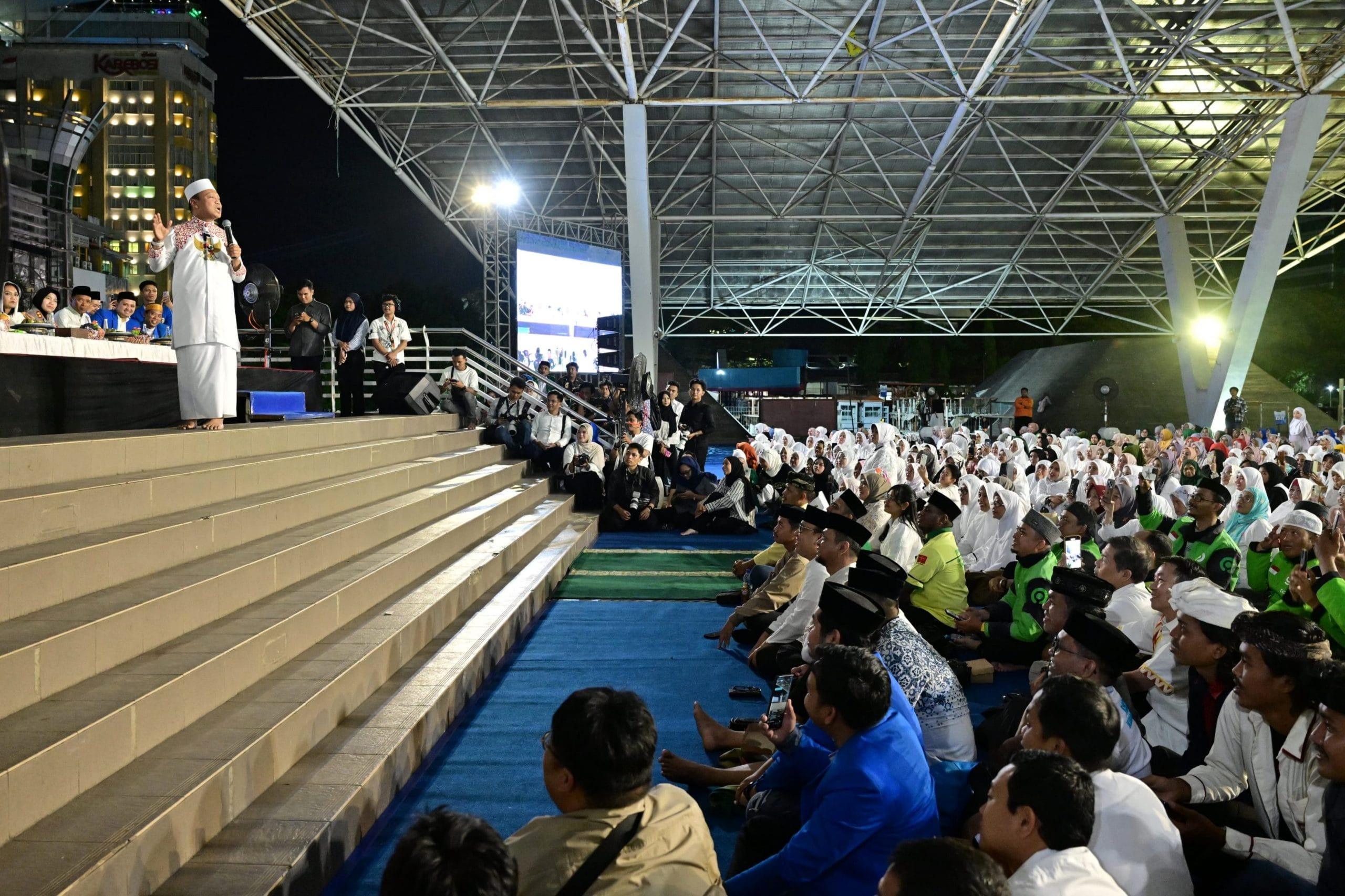 Inilah dilakukan, Pemerintah Kota Makassar menggelar doa bersama, menghadirkan para tokoh agama, tokoh pemuda lintas organisasi, hingga berbagai komunitas masyarakat, berlangsung di Lapangan Karebosi Makassar, Selasa (2/9/2025) malam.