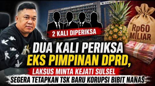 MAKASSAR, INDIWARTA.COM – Lembaga Antikorupsi Sulawesi Selatan (Laksus) mendesak Kejaksaan Tinggi Sulawesi Selatan segera menetapkan tersangka baru dalam kasus dugaan korupsi pengadaan bibit nanas senilai Rp60 miliar. Desakan ini muncul setelah penyidik dua kali memeriksa empat mantan pimpinan DPRD Sulsel dalam sepekan terakhir.