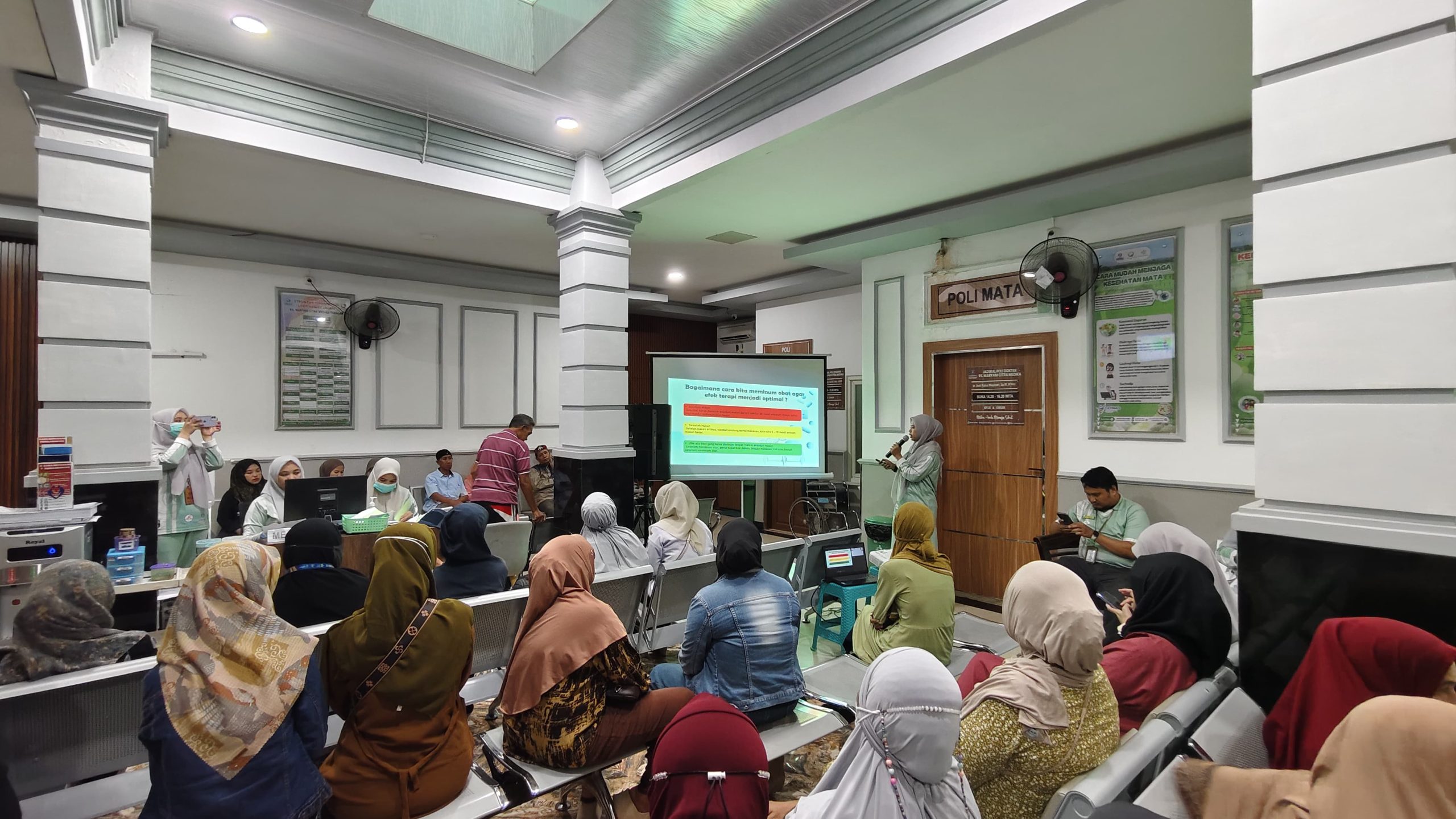 Kegiatan yang menghadirkan narasumber Apt. Eka Febrianty, S.Farm itu dilaksanakan di ruang tunggu poliklinik, bertepatan dengan dibukanya layanan poliklinik siang. Strategi ini dipilih agar pasien dan keluarga yang datang berobat maupun kontrol dapat langsung menjadi audiens tanpa harus meninggalkan agenda pelayanan kesehatan mereka.