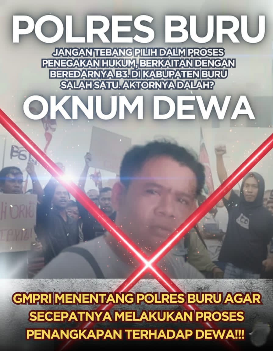 BURU, INDIWARTA.COM – Gerakan Mahasiswa Persatuan Indonesia (GPMRI) Kabupaten Buru mendesak Kepolisian Resor Buru segera menangkap seorang pria bernama Dewa yang diduga terlibat dalam peredaran Bahan Berbahaya dan Beracun (B3) di Kecamatan Wailata, Kabupaten Buru, Maluku.