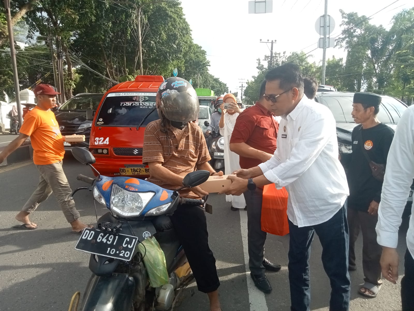 Di sisi barat lokasi, Kepala Dinas Perindustrian dan Perdagangan (Perindag) Kabupaten Takalar Iksan Nurdin bersama jajarannya juga membagikan takjil kepada pengendara dari arah Makassar menuju pusat Kota Takalar.