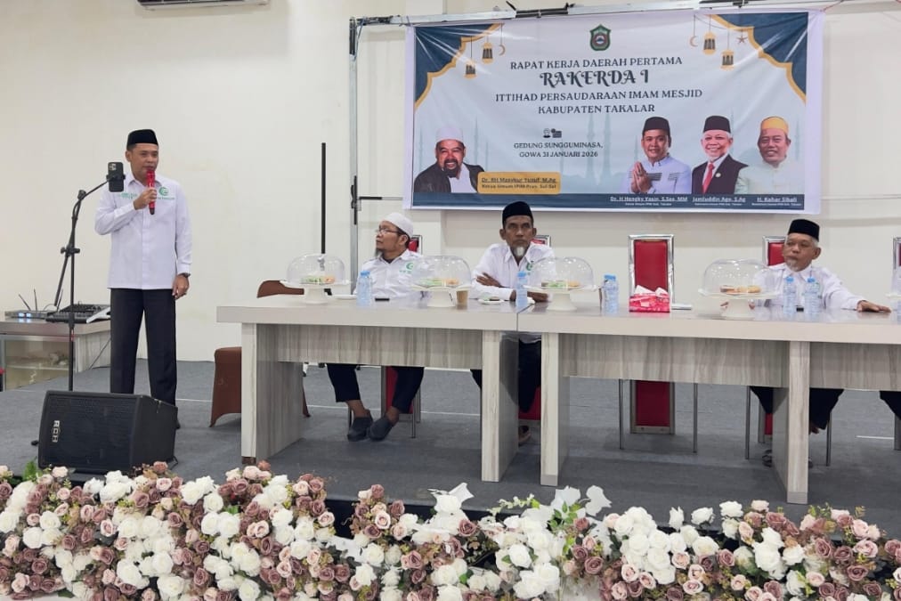 TAKALAR, INDIWARTA.COM – Ittihad Persaudaraan Imam Masjid (IPIM) Kabupaten Takalar menggelar Rapat Kerja Daerah (Rakerda) I sebagai langkah awal menyusun arah dan strategi program organisasi. Kegiatan ini berlangsung di Gedung Adi Jaya, Sungguminasa, Kabupaten Gowa, Sabtu, 31 Januari 2026.