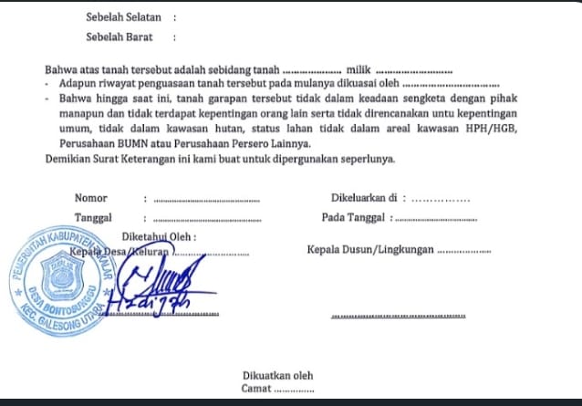 Di tengah polemik tersebut, muncul temuan baru yang memantik pertanyaan warga. Sejumlah warga mengaku menemukan blangko kosong surat keterangan garapan yang telah dibubuhi tanda tangan kepala desa dan stempel resmi desa.