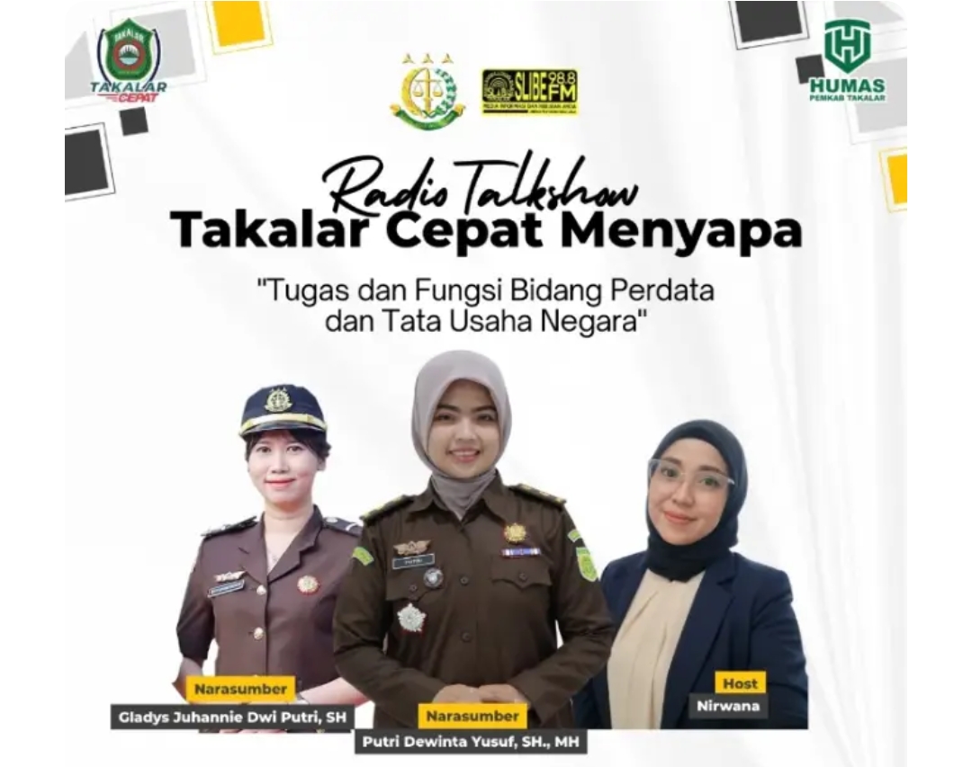 TAKALAR, INDIWARTA.COM – Peran kejaksaan tak melulu soal penuntutan pidana. Dalam talkshow “Takalar Cepat Menyapa” yang disiarkan Radio Suara Lipang Bajeng (SLIBE 98.8 FM), Kejaksaan Negeri Takalar membuka sisi lain tugas jaksa melalui bidang Perdata dan Tata Usaha Negara (Datun), Kamis, (9/04/2026).