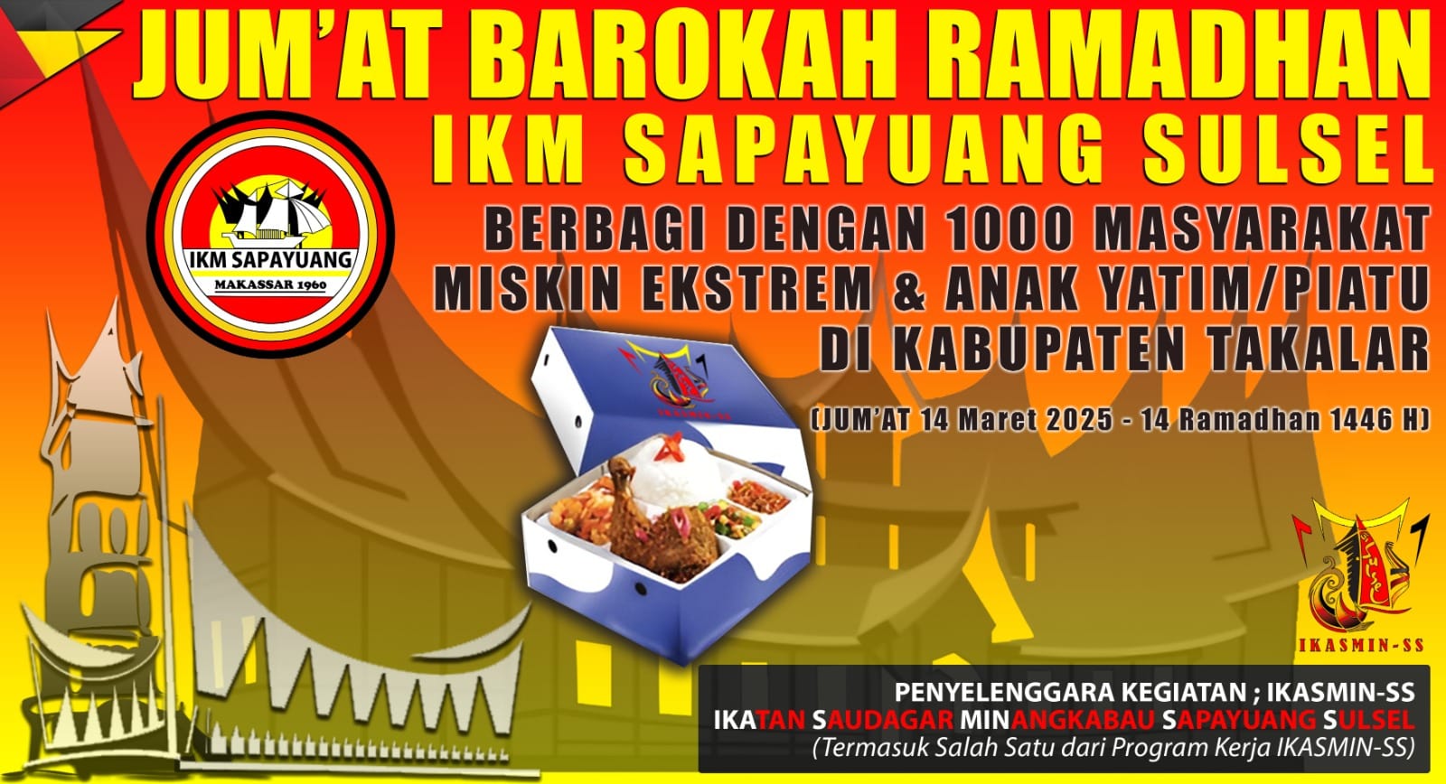 TAKALAR, INDIWARTA.COM – Program Jum’at Berkah Sapayuang kembali hadir untuk menebar kebaikan di bulan suci Ramadhan. Dengan penuh rasa syukur, kegiatan berbagi ini berhasil mengumpulkan 1.150 pax Nasi Dos dari berbagai Rumah Makan Padang untuk disalurkan kepada masyarakat miskin ekstrem serta anak yatim/piatu di Kabupaten Takalar.