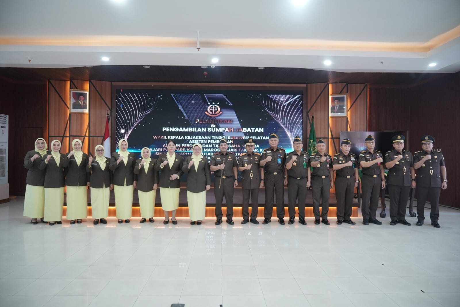 MAKASSAR, INDIWARTA.COM – Kejaksaan Tinggi Sulawesi Selatan (Kejati Sulsel) melangsungkan upacara Pelantikan dan Pengambilan Sumpah Jabatan bagi sejumlah pejabat baru di lingkungan Kejati dan Kejari se-Sulawesi Selatan. Prosesi yang dipimpin langsung oleh Kepala Kejaksaan Tinggi Sulsel, Agus Salim, digelar di aula Kejati Sulsel, Kamis (24/7/2025).