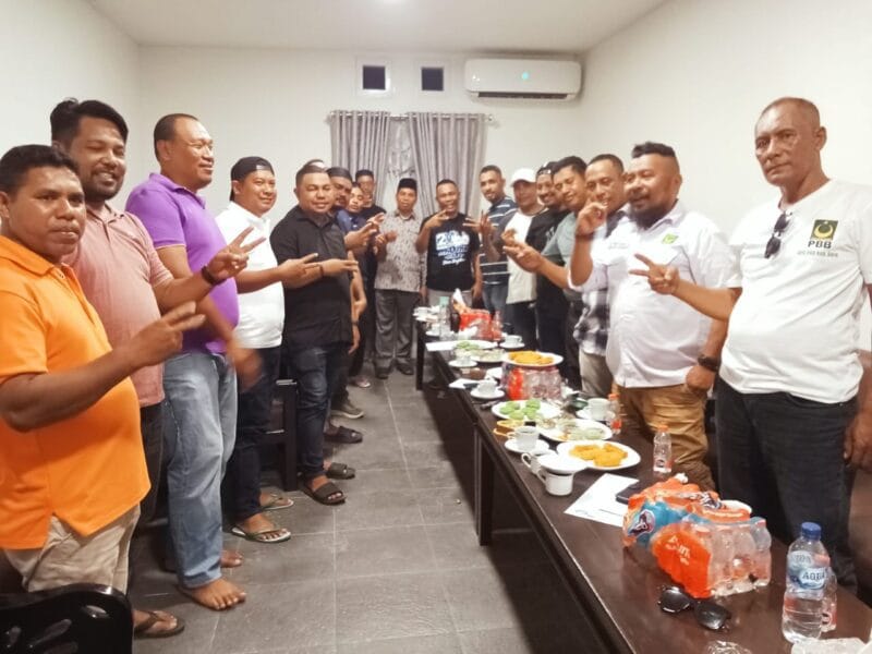 BURU MALUKU, INDIWARTA – Politisi Partai Kebangkitan Bangsa (PKB) Kabupaten Buru, Djalil Mukaddar dalam memimpin rapat Tim Pemenangan Kampanye (2M) pada Sabtu malam 21/9/2024.