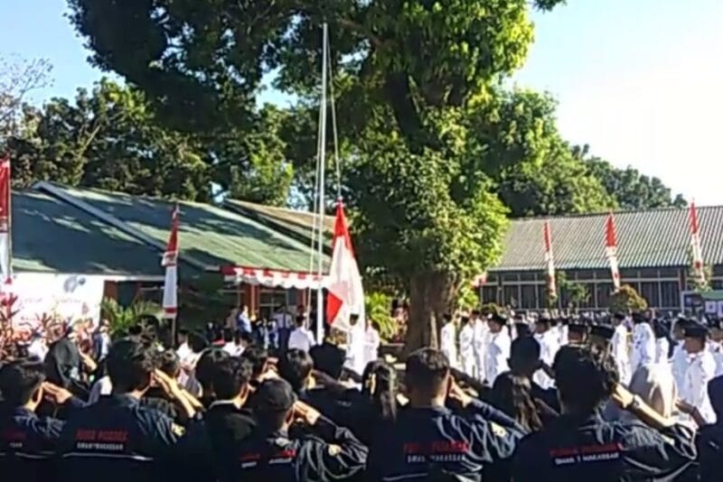 MAKASSAR, INDIWARTA.COM – Pasukan Pengibar Bendera (Paskibra) SMA 7 Makassar pada momentum Hari Ulang Tahun ke-79 Republik Indonesia, sukses mengibarkan sang merah putih.
