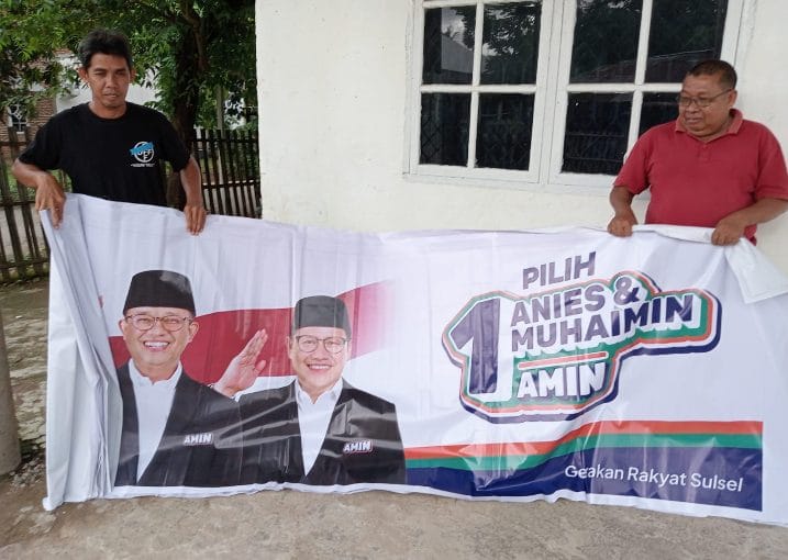 Relawan pasangan nomor urut 1 Anies Baswedan – Muhaimin Iskandar (AMIN) yang tergabung dalam Gabungan Relawan Muda (GARDA) AMIN Takalar melakukan penyebaran Alat Peraga Kampanye (APK) berupa spanduk Gerakan Rakyat di seluruh pelosok desa dan kelurahan di wilayah itu.
