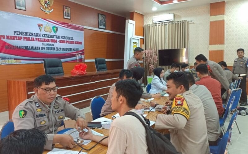 MAROS, INDIWARTA.COM – Polres Maros, melaksanakan pemeriksaan kesehatan menyeluruh untuk personel yang akan terlibat dalam pengamanan Tempat Pemungutan Suara (TPS), pada Pilkada Kabupaten Maros 2024-2025.