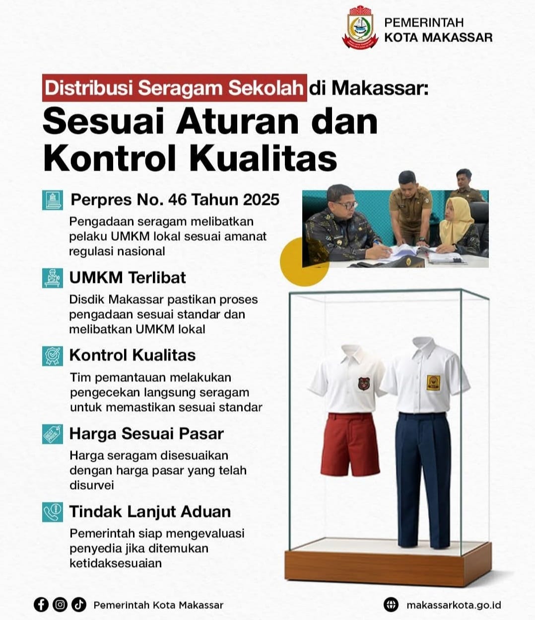 “Seragam gratis yang dibiayai oleh Pemerintah Kota Makassar tentu sangat membantu, terutama bagi masyarakat yang berada dalam keterbatasan ekonomi,” jelasnya.