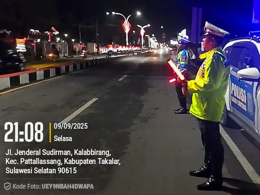 TAKALAR, INDIWARTA.COM – Personel Unit Turjawali Sat Lantas Polres Takalar kembali menggelar Kegiatan Rutin Yang Ditingkatkan (KRYD) berupa Patroli Blue Light pada Selasa malam (09/09/2025). Patroli berlangsung sejak pukul 20.00 WITA hingga larut malam, menyasar sejumlah titik rawan pelanggaran dan kecelakaan lalu lintas di wilayah hukum Kabupaten Takalar.
