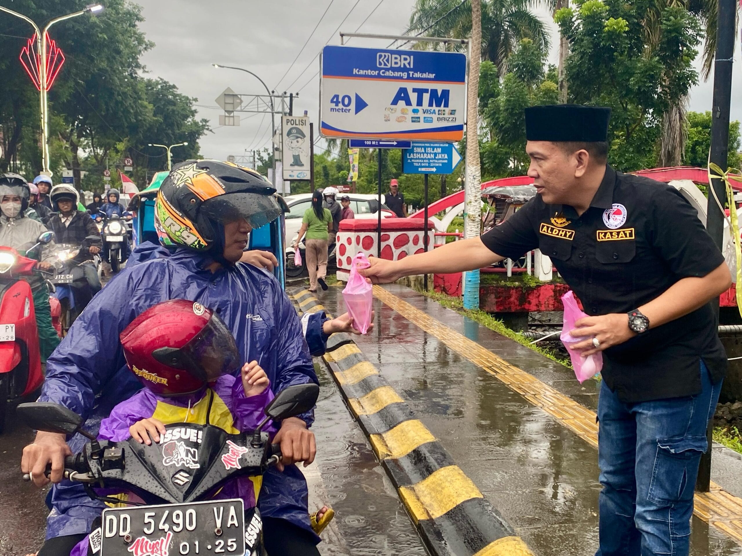 Setelah penyerahan paket sembako kepada kaum dhuafa, kegiatan dilanjutkan dengan pembagian takjil bagi pengendara yang melintas di Jalan Jenderal Sudirman, tepatnya di depan Pos Kamseltibcar Lantas Polres Takalar. Aksi ini mendapat respons positif dari masyarakat, terutama mereka yang tengah dalam perjalanan untuk berbuka puasa.