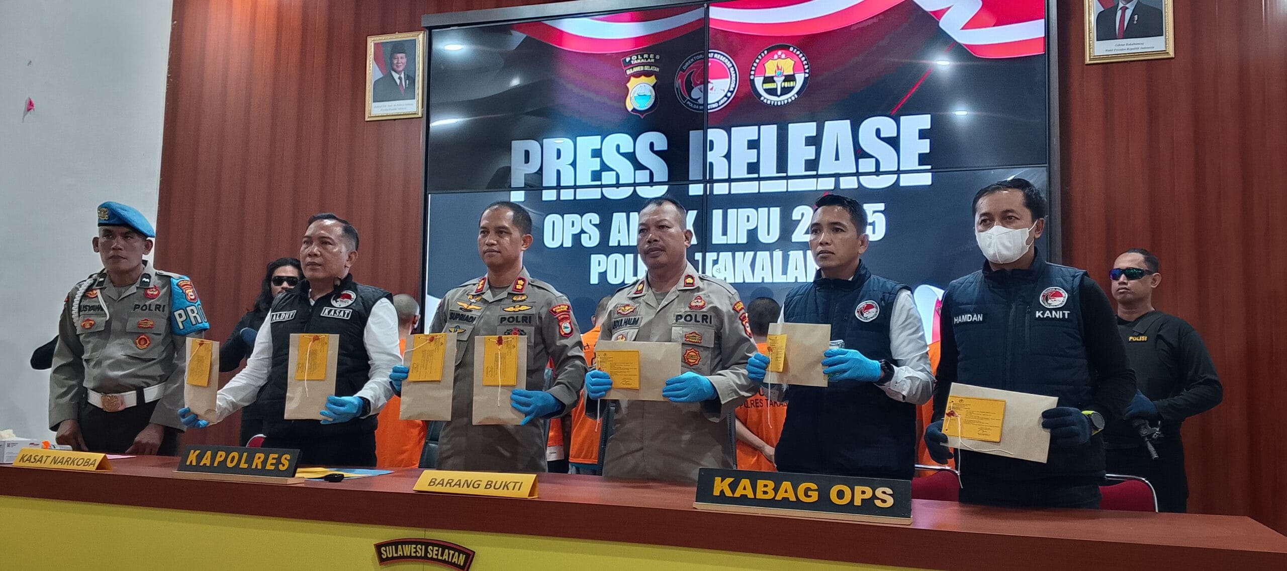 Dalam operasi ini, Polres Takalar berhasil mengungkap sembilan tersangka yang terlibat dalam peredaran dan penyalahgunaan narkoba. Dari sembilan tersangka tersebut, 3 orang merupakan Target Operasi (TO) dan 6 orang Non TO.