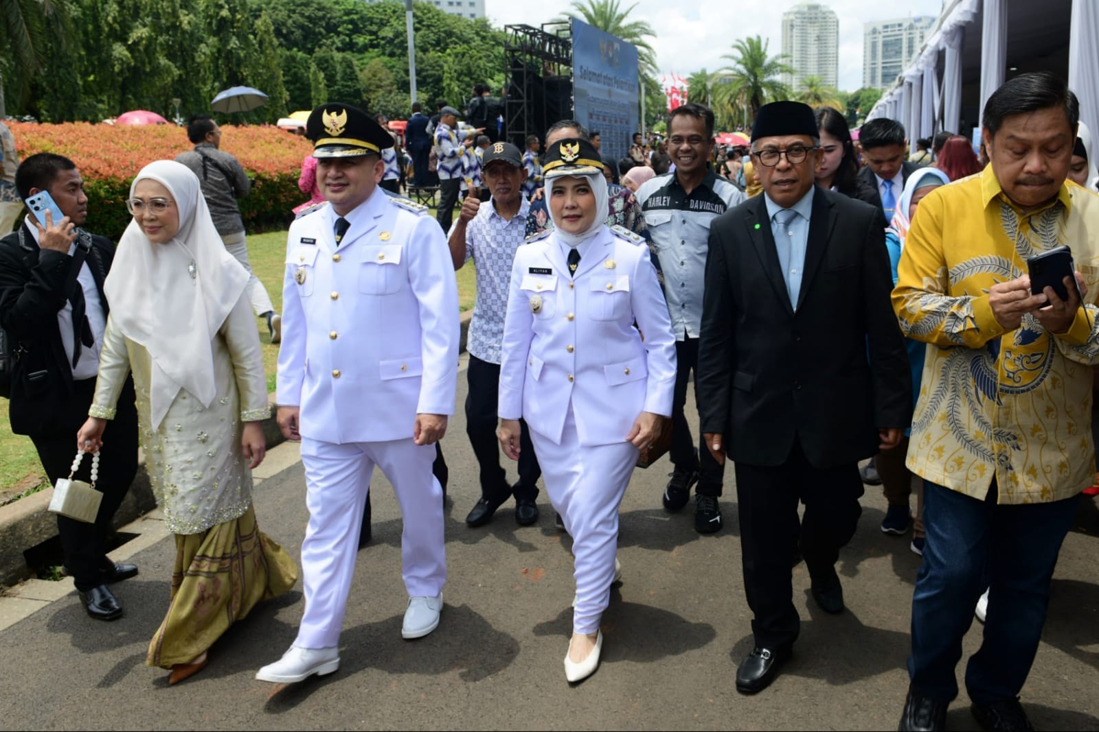 Pelantikan serentak bersama ratusan pasang kepala daerah hasil Pilkada 2024, digelar di halaman tengah antara Istana Kepresidenan, Jakarta Pusat, Kamis (20/2/2025). Acara ini diawali kirab dari Monas menuju Istana.