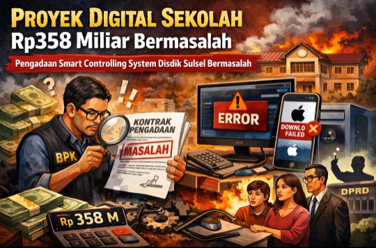MAKASSAR, INDIWARTA.COM – Badan Pemeriksa Keuangan (BPK) menemukan sejumlah persoalan dalam pengadaan Smart Controlling System (SCS) pada Dinas Pendidikan Provinsi Sulawesi Selatan tahun anggaran 2024. Proyek bernilai ratusan miliar rupiah itu dinilai tidak dilaksanakan sesuai ketentuan, mulai dari tahap perencanaan hingga pemanfaatannya di sekolah.