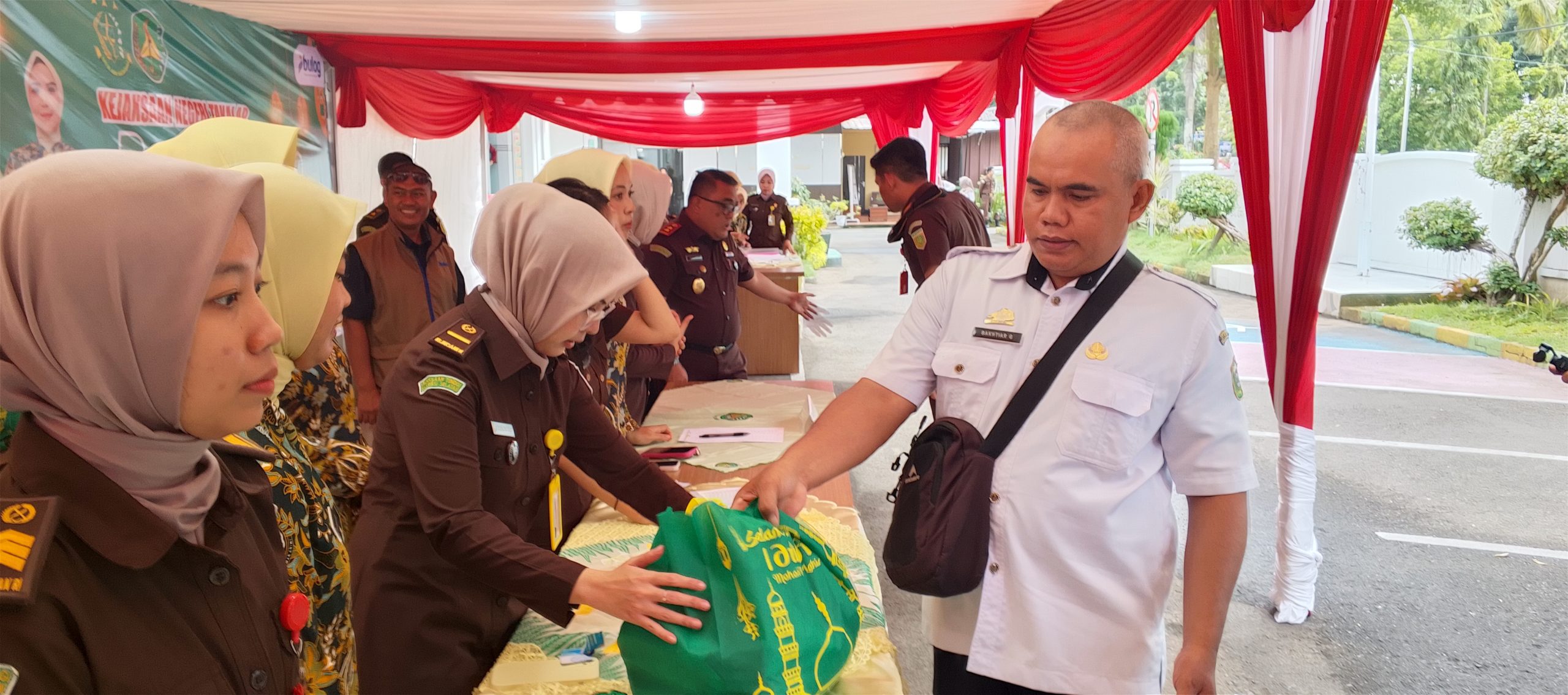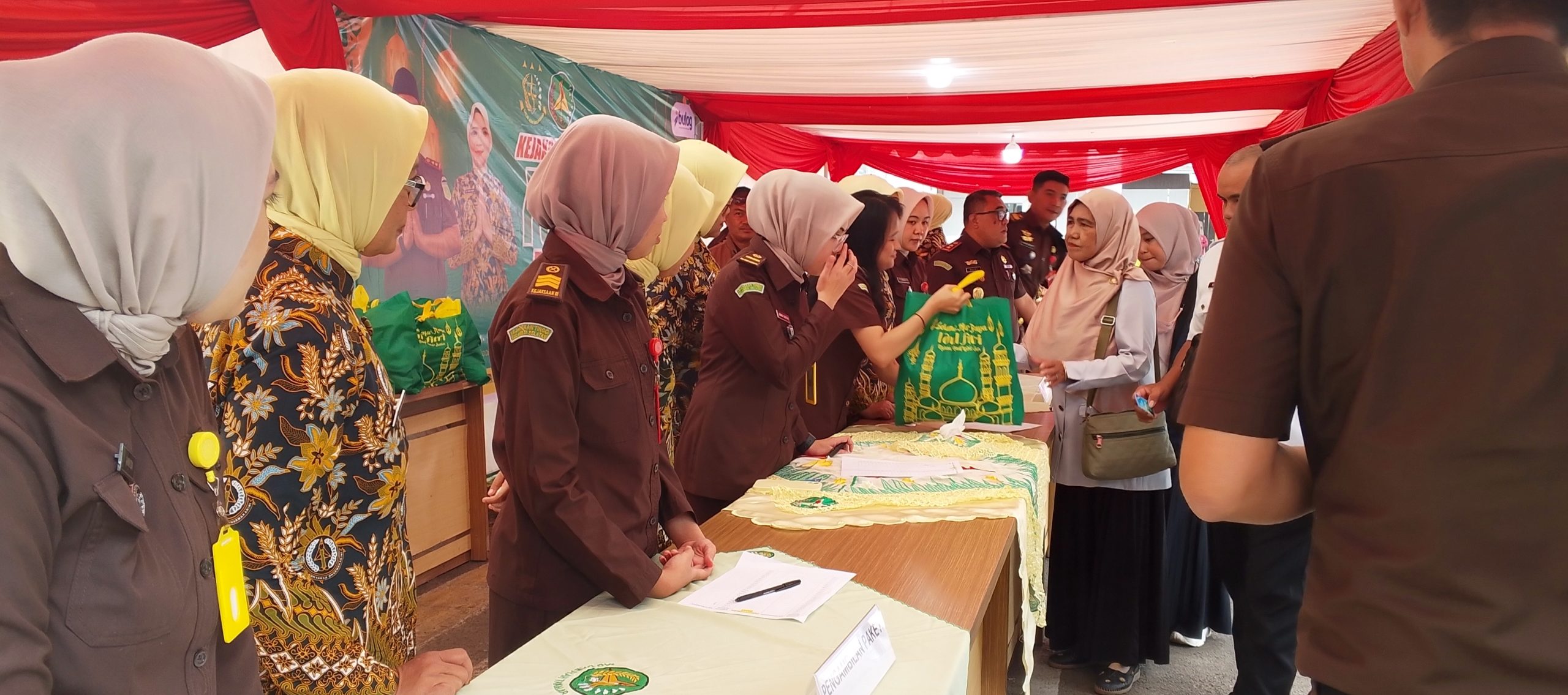 Sejak pagi, sejumlah pegawai Kejari Takalar terlihat aktif melayani warga yang menukarkan kupon untuk mendapatkan kebutuhan pokok. Paket sembako yang disediakan antara lain beras, tepung terigu, gula pasir, dan minyak goreng.