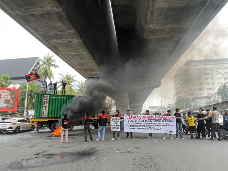 MAKASSAR, INDIWARTA.COM – Sejumlah mahasiswa yang tergabung dalam Gerakan Aktivis Mahasiswa (GAM) menggelar aksi unjuk rasa di Pertigaan Jl. A.P. Pettarani dan Hertasning, Kota Makassar, Sulawesi Selatan. Mereka menolak Revisi Undang-Undang Tentara Nasional Indonesia (RUU TNI) yang dinilai sebagai ancaman bagi demokrasi.