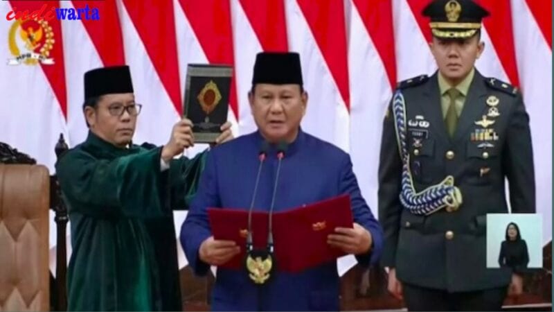 Dilansir dari Kantor Berita Politik dan Ekonomi RMOL, MPR meminta Prabowo Subianto untuk mengambil sumpahnya sebagai presiden terpilih, di hadapan 709 anggota MPR RI dan seluruh rakyat Indonesia.