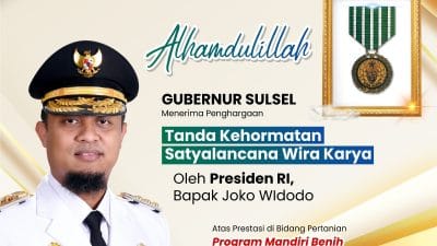 Indiwarta.com_PADANG, Gubernur Sulsel Andi Sudirman Sulaiman menerima penghargaan Satyalancana Wira Karya dari Presiden Republik Indonesia…