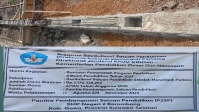 GOWA, INDIWARTA.COM – Proyek revitalisasi satuan pendidikan menengah pertama di SMPN 2 Barombong, Kabupaten Gowa,…