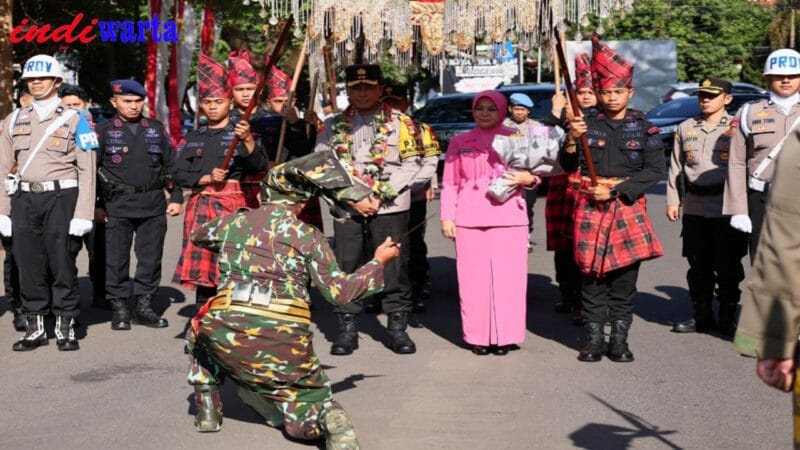 Kapolda Sulsel, Irjen Pol. Yudhiawan S.H., S.I.K., M.H., M.Si beserta Istri kemudian menyapa jajaran personil Polda Sulsel, yang berdiri berjejer menyambutnya.