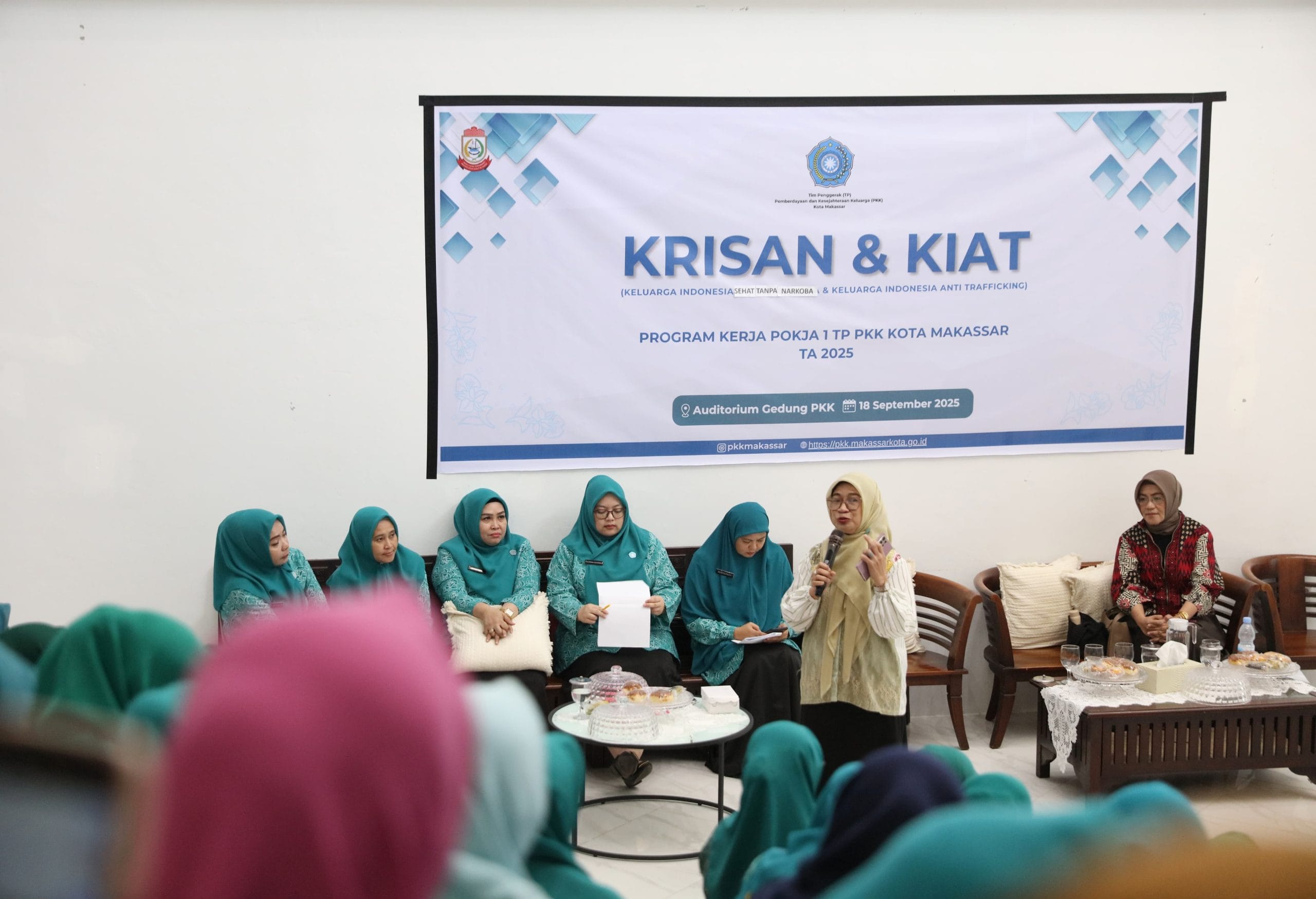 MAKASSAR, INDIWARTA.COM – TP PKK Kota Makassar melalui Pokja I, menggelar sosialisasi Keluarga Indonesia Sehat Tanpa Narkoba (Krisan) dan Keluarga Indonesia Anti Trafficking (Kiat) di Auditorium, pada Kamis (18/9/2025).