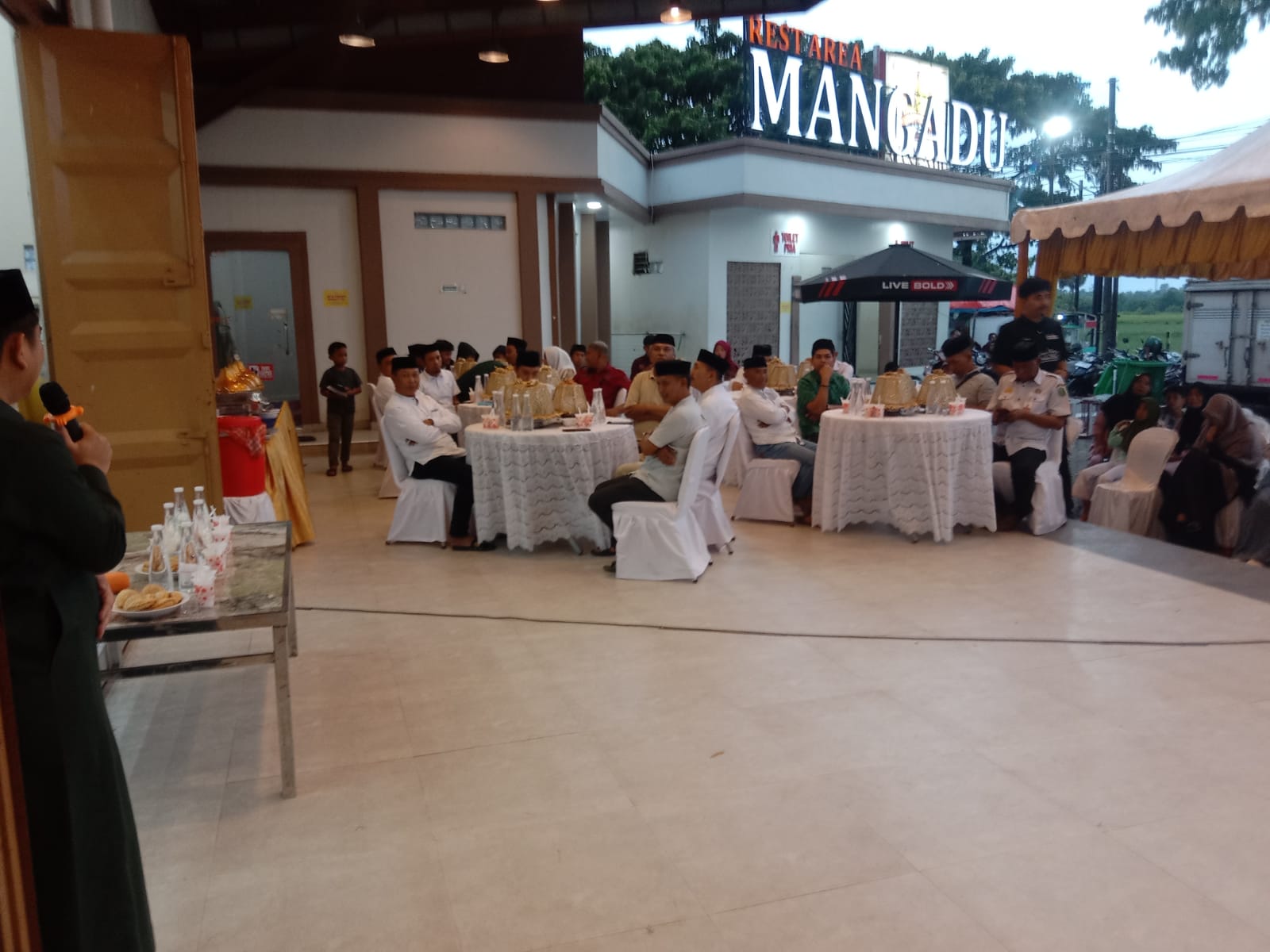 Owner Rest Area Mangadu, Muhammad Resky, dalam sambutannya menyampaikan rasa terima kasih kepada seluruh tamu undangan dan masyarakat yang telah hadir dalam kegiatan tersebut. Ia mengatakan kegiatan buka puasa bersama ini merupakan bentuk rasa syukur kepada Allah SWT sekaligus momentum mempererat silaturahmi antara pemerintah, masyarakat, dan para pengguna jalan.