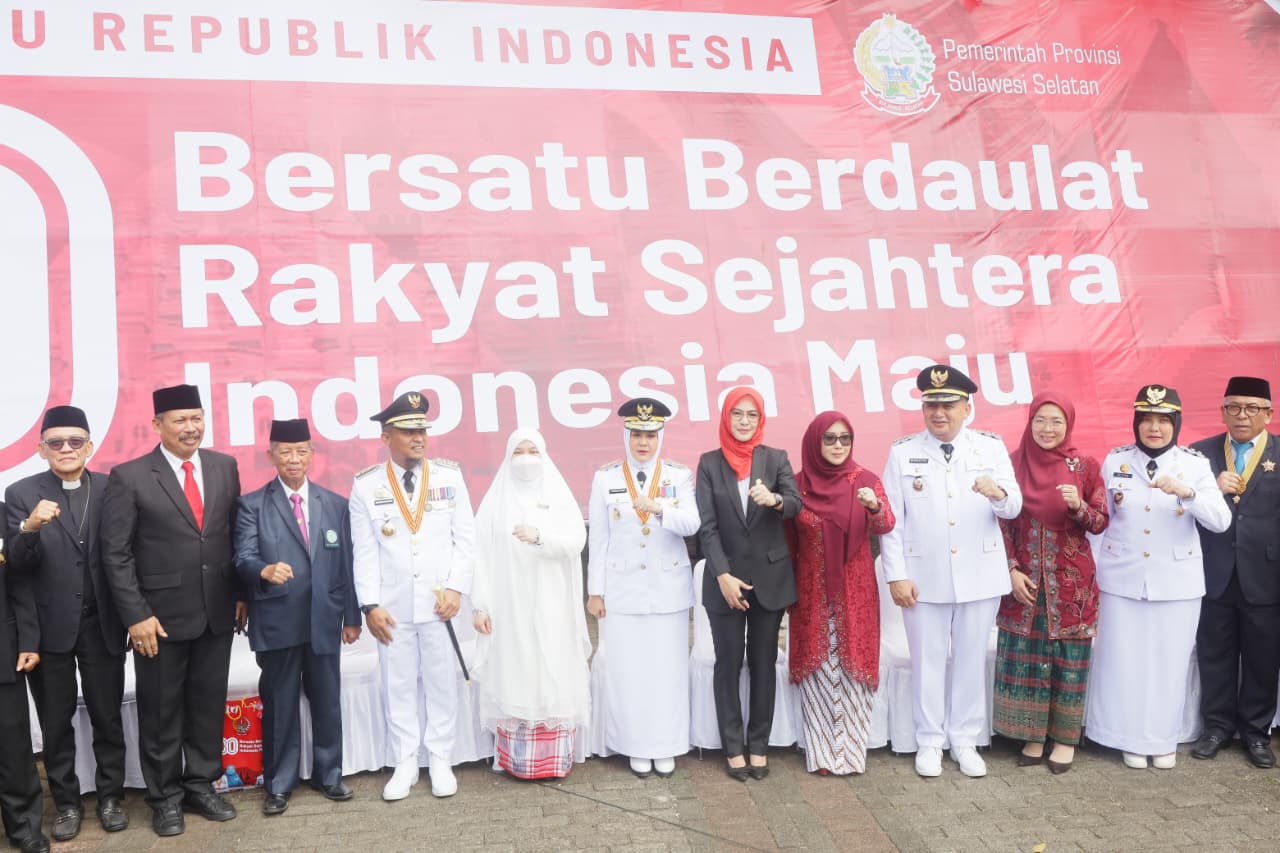 Gubernur Sulsel, Andi Sudirman Sulaiman bertindak sebagai inspektur upacara. Sementara itu, Ketua DPRD Sulsel, Rachmatika Dewi mendapat kehormatan untuk membacakan teks Proklamasi Kemerdekaan.